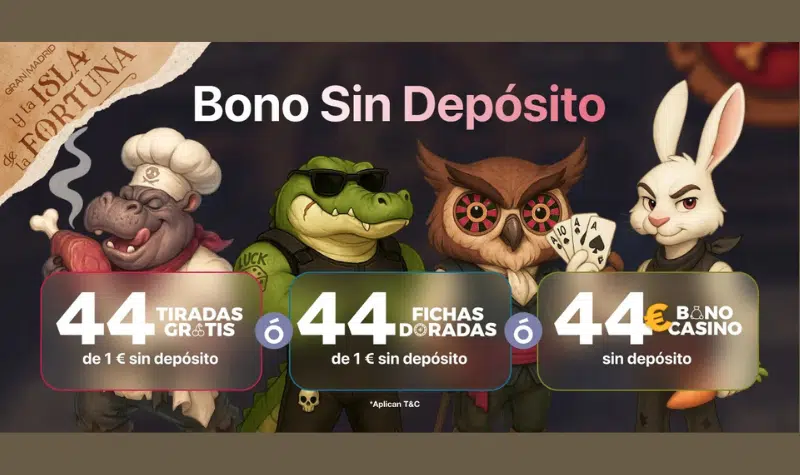 Gran Madrid está conmemorando su 44º aniversario y para ello ha decidido convertirse en uno de los escasos casinos con promos sin depósito del mercado español. Y si la oferta gira en torno a algo es precisamente hacia ese número 44. El jugador tendrá que elegir entre tres opciones diferentes de bono, según cuáles sean sus preferencias: